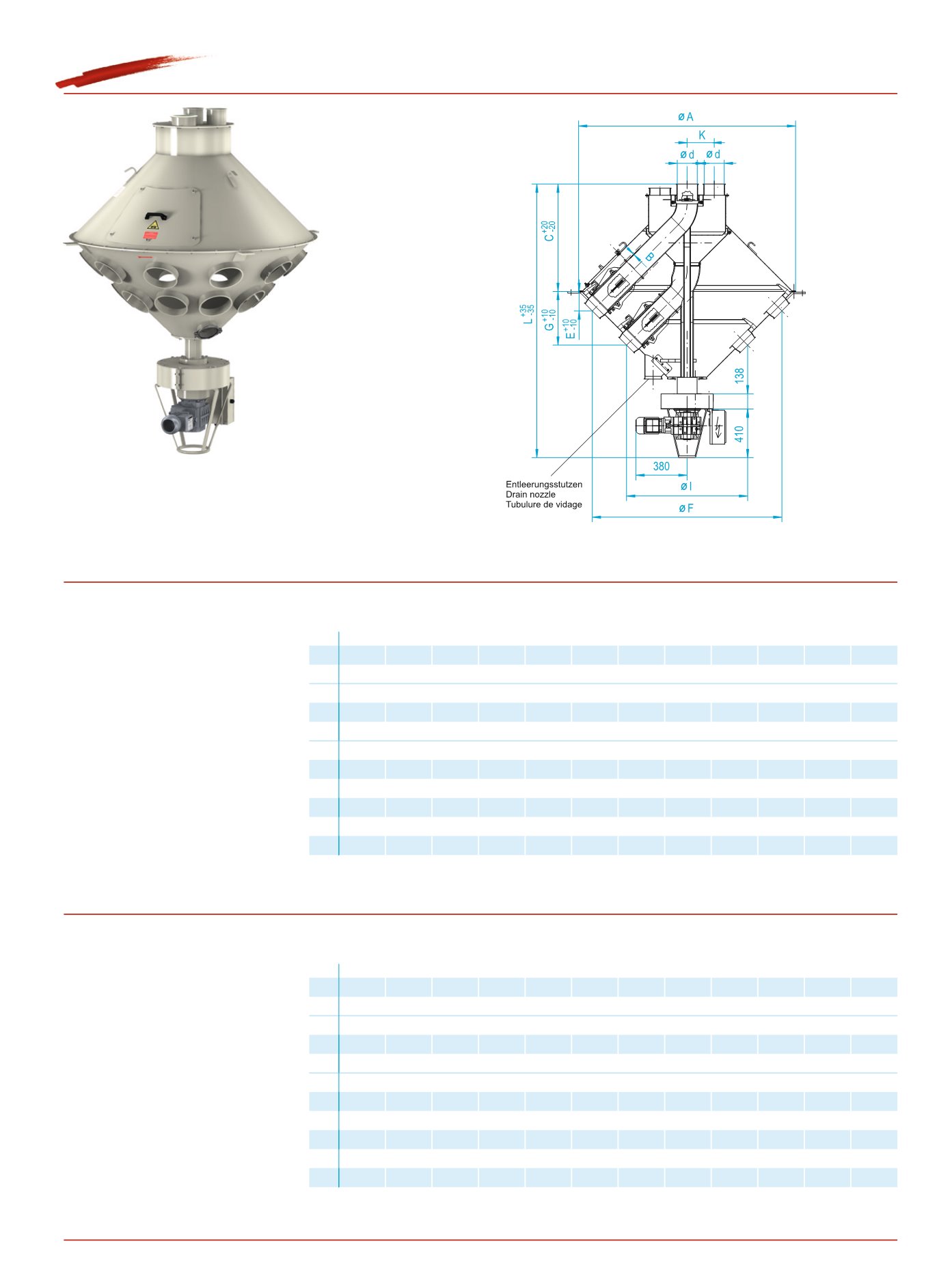 *) Richtwerte für Durchsatzmengen für körnige Produkte mit einem