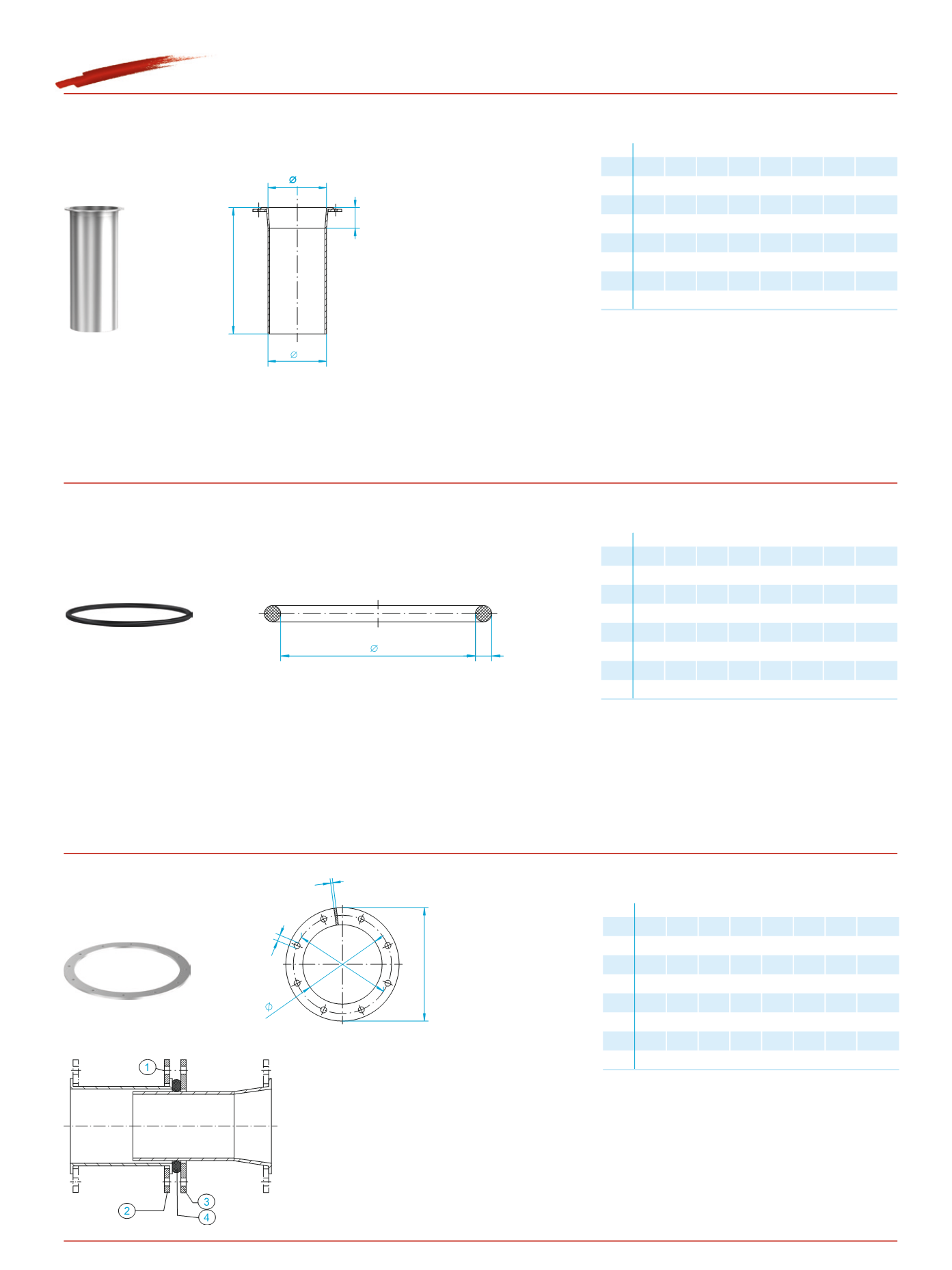 ) DN 350–800 mm (stainless steel): With galvanized loose flange as standard. Surcharge for loose flange made of stainless steel. Surface CrNiblasted.