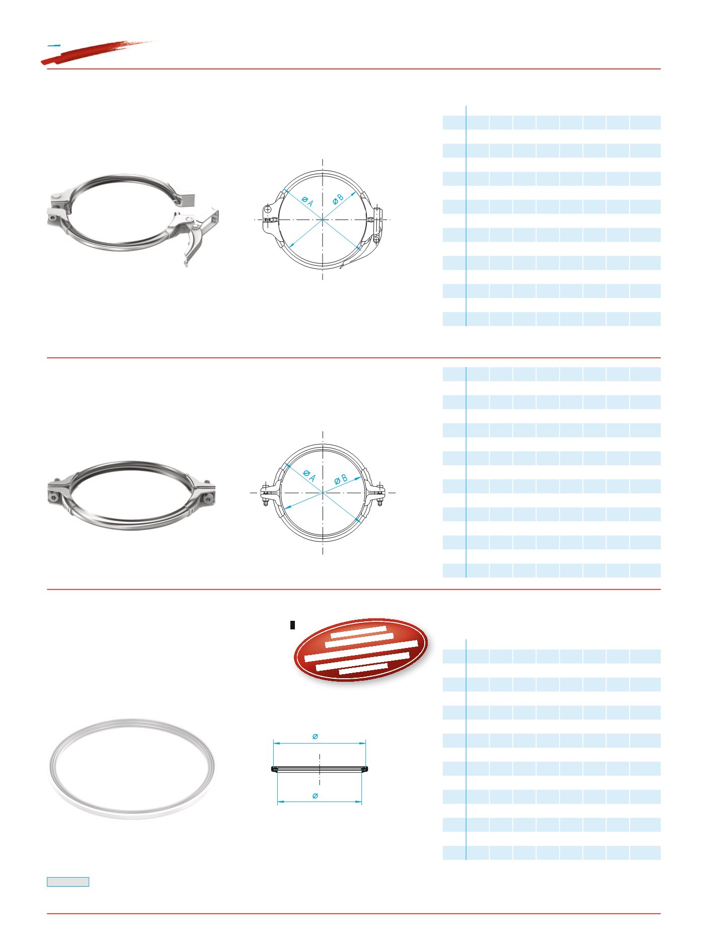 Spannringe mit Bördeldichtring in Verbindung mit den im Katalog gekennzeichneten Rohrteilen geprüft bis 3 bar explosionsdruckstoßfest.