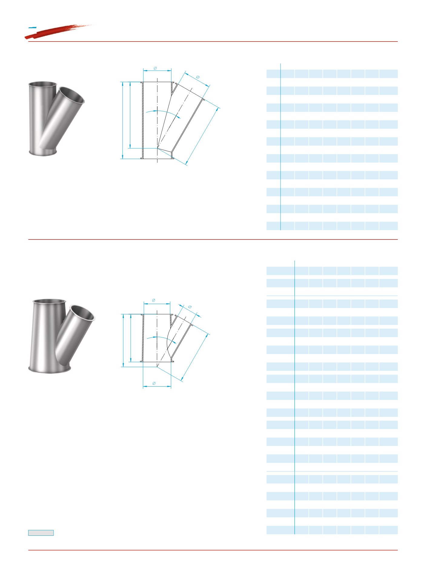Other combinations of diameter available on request.